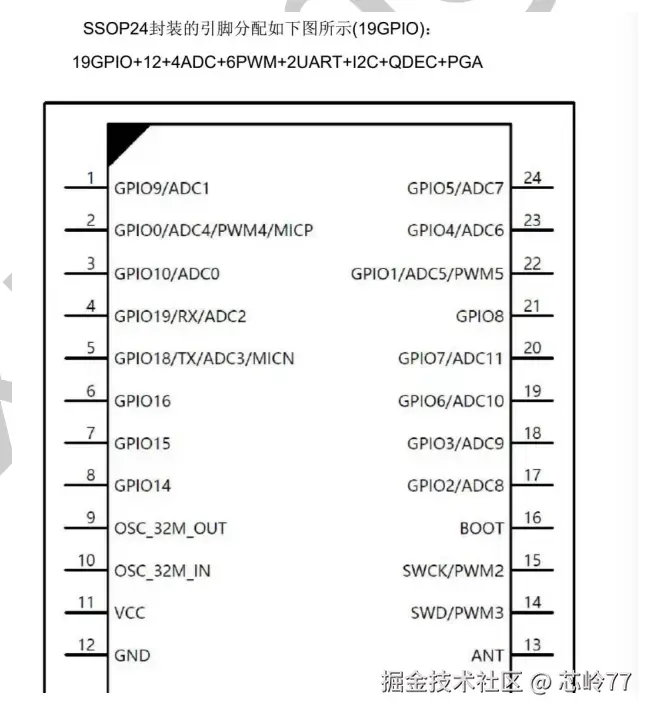 最多 11GPIO,25mA 输出1 PGA,0~42.3dB/1.6dB step