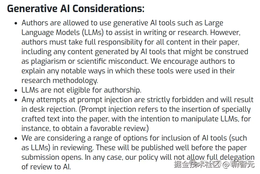 同时,组委会禁止将 LLM 列为作者,严禁「提示词注入」,否则直接退稿。