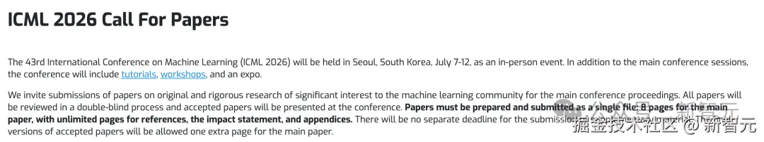 ICML 2026 论文征稿,正式开启!