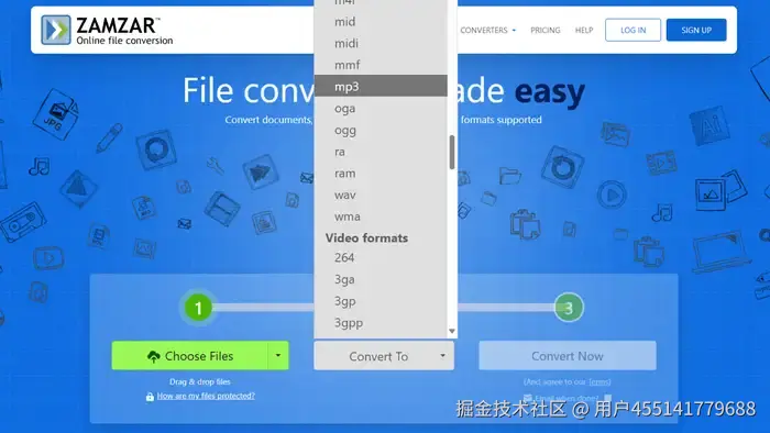 Convertio是一款免费的在线转换工具,可以将flv文件转换成mp4,也可以转换为我们需要的mp3格式。这款在线工具和前文介绍的工具相比可以转换的格式种类稍有欠缺,更多是以图片类文件的格式转换作为工具的核心功能。