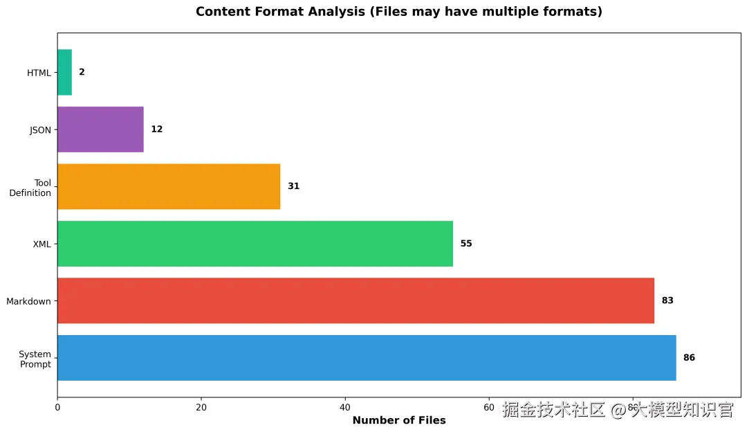 - • 结构化已成标配:86.5%/57.3% 的提示词采用Markdown/XML标签进行结构化组织