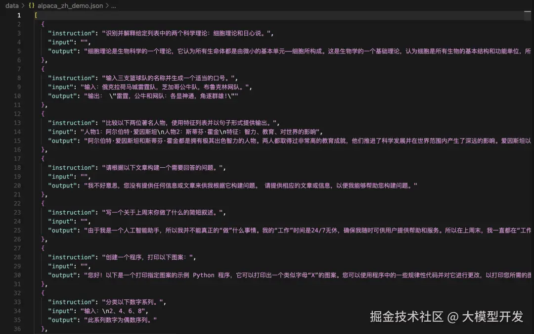 例如,做一个翻译机器人,就准备 {"instruction": "翻译成英文", "input": "你好", "output": "Hello"}这样的数据对。