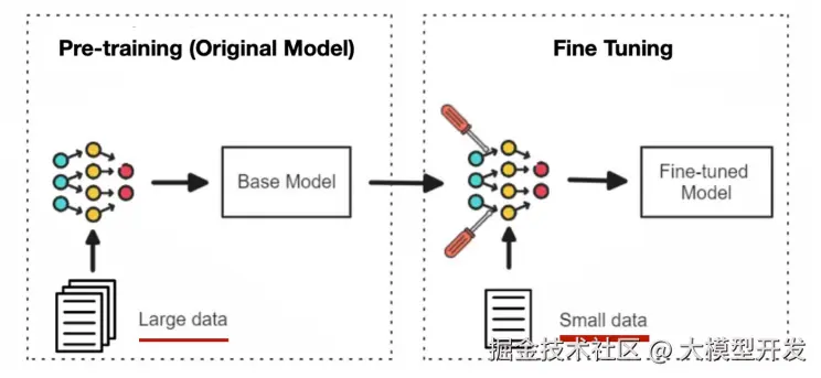 对于大多数开发者和研究者,我们通常从微调开始,而非从头预训练。