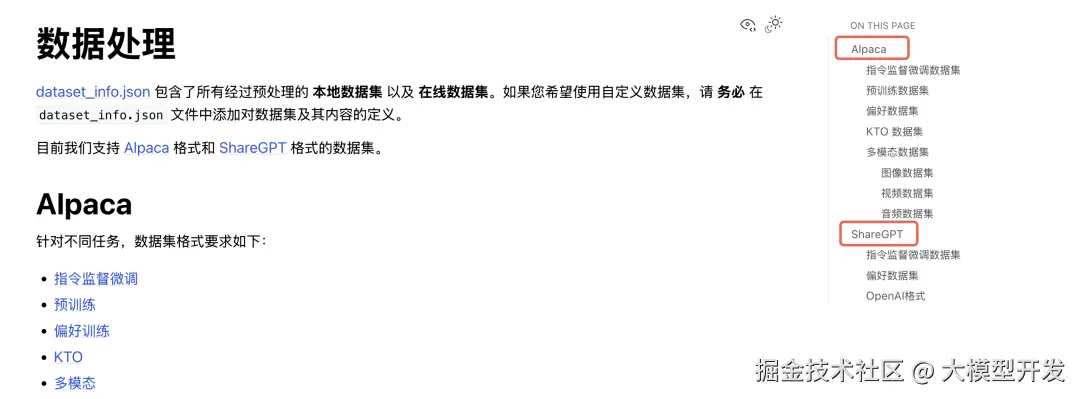 - 数据:高质量的对话或指令数据集,例如 Alpaca 或 ShareGPT 格式的数据。