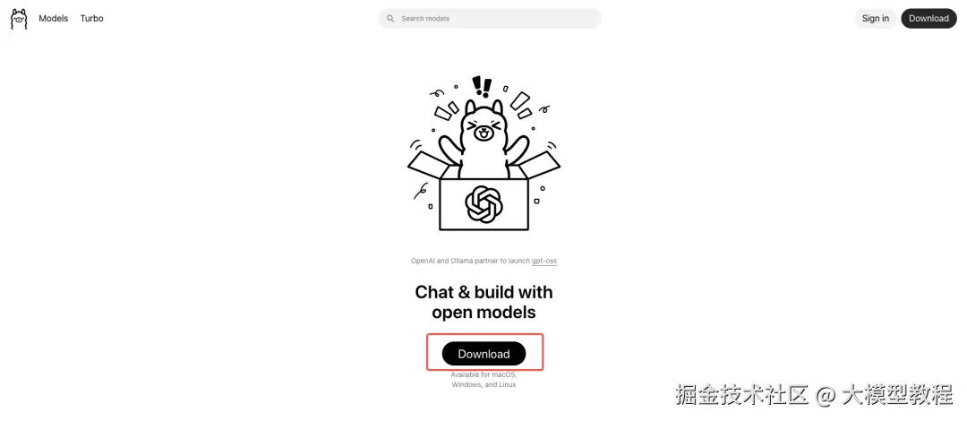 打开 Ollama官网,点击页面上的 Download 按钮;