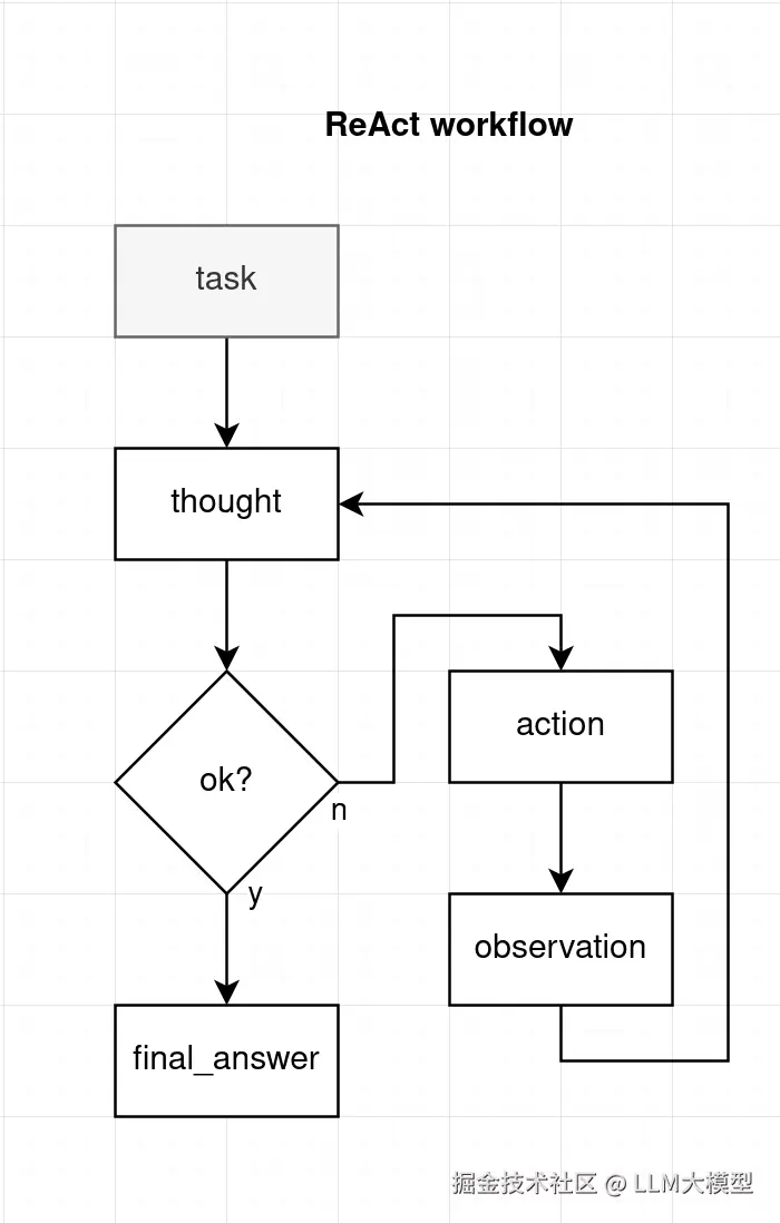 - 结果(final_answer),大模型 认为目标已经达成或失败,生成结果,结束这个任务。
