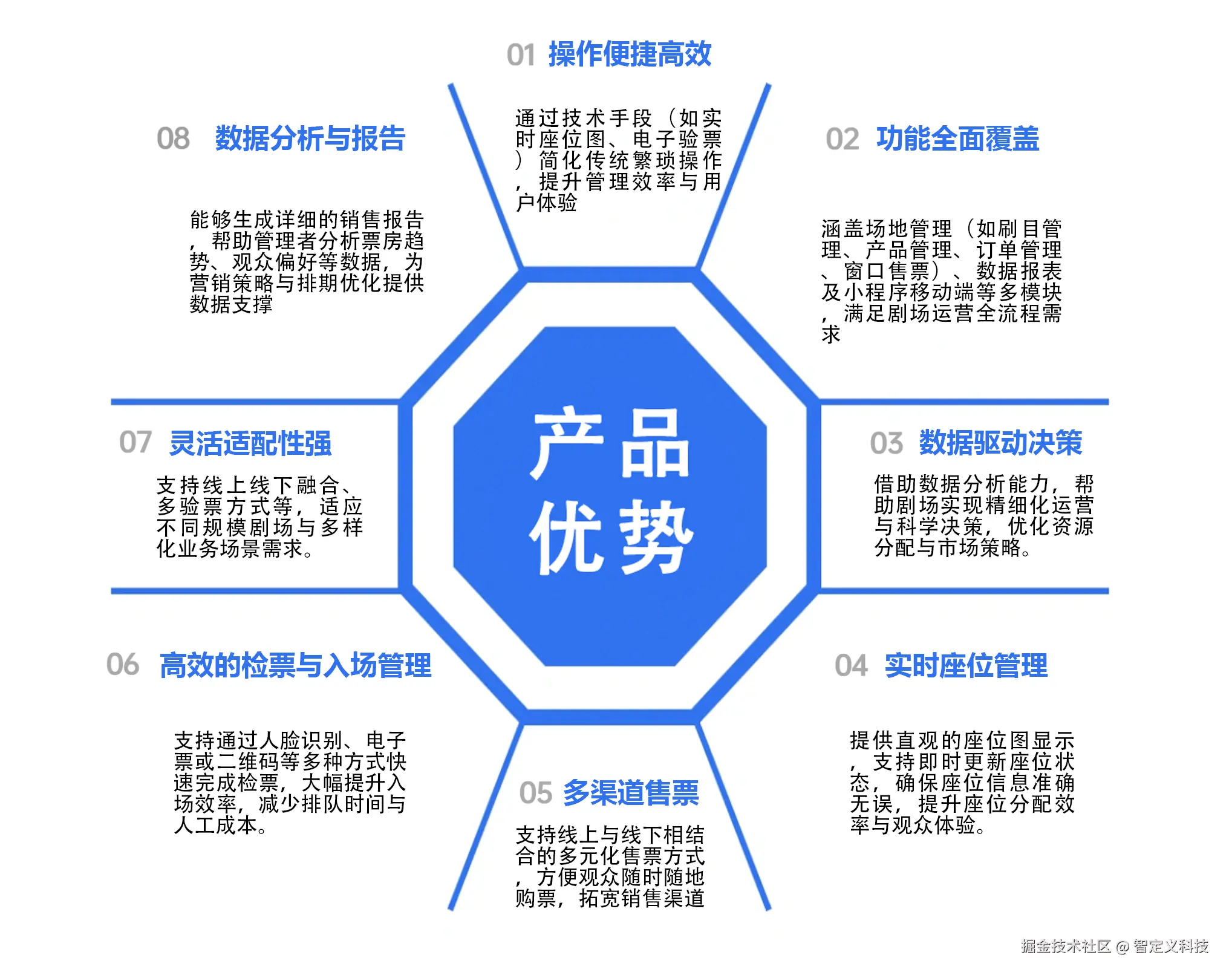 3、数据驱动决策:借助数据分析能力,帮助剧场实现精细化运营与科学决策,优化资源分配与市场策略。