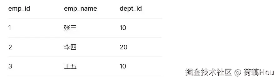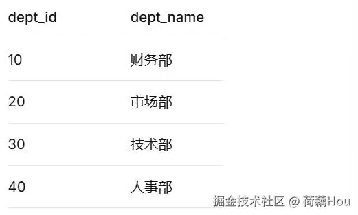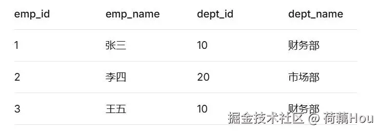 dept_id为10和20的记录,因为只有这两个ID在两个表中同时存在。 -