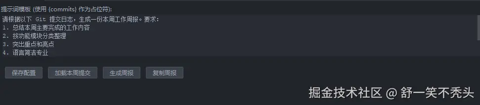 - 自动分析提交日志,提炼工作要点