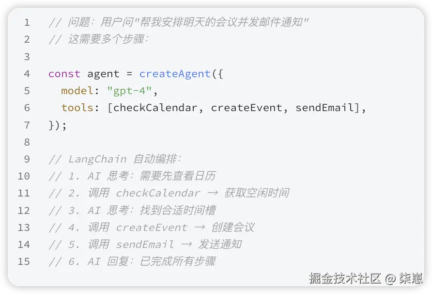 ✅ LangChain + AI:就像一个有助手团队的超级顾问 - 可以搜索网络 🔍 - 可以查数据库 📊 - 可以写代码并执行 💻 - 可以记住之前的对话 🧠 - 可以调用其他专家 AI 👥