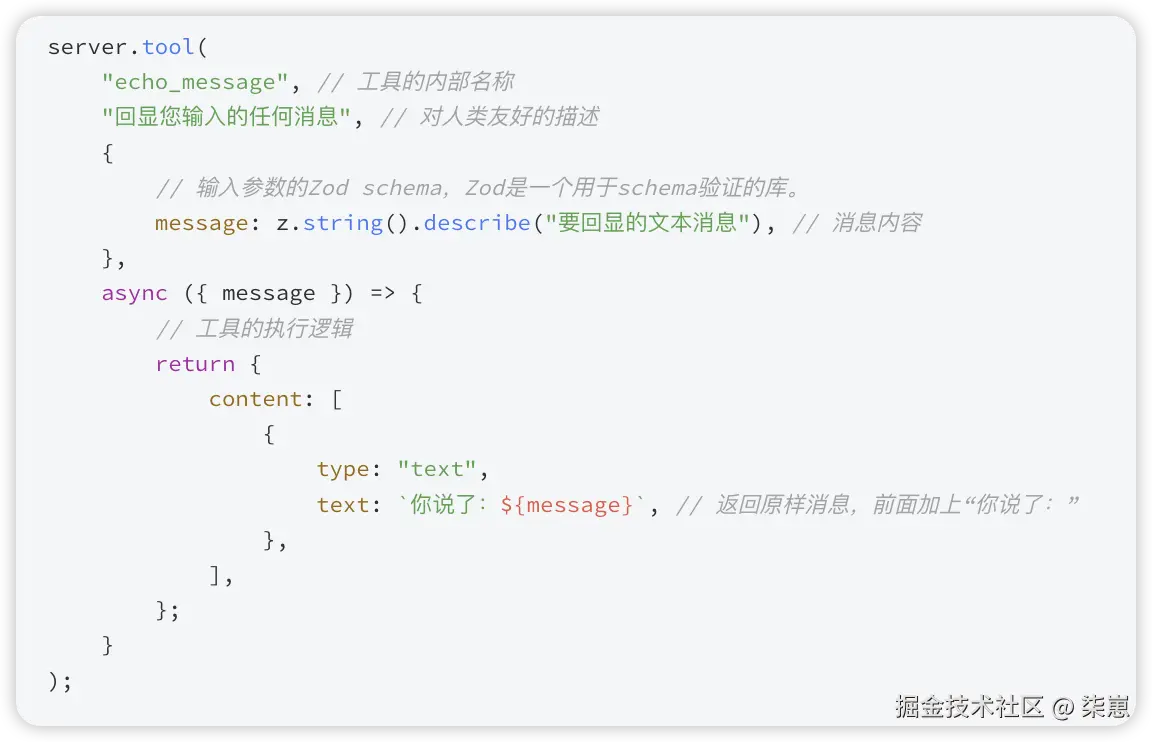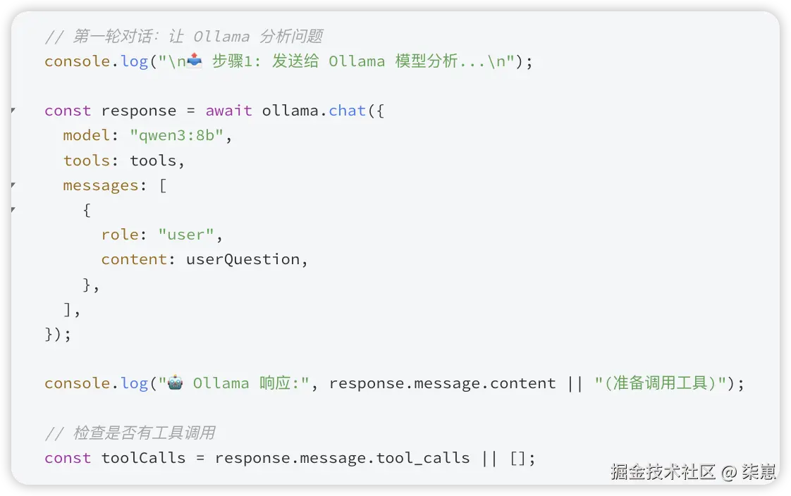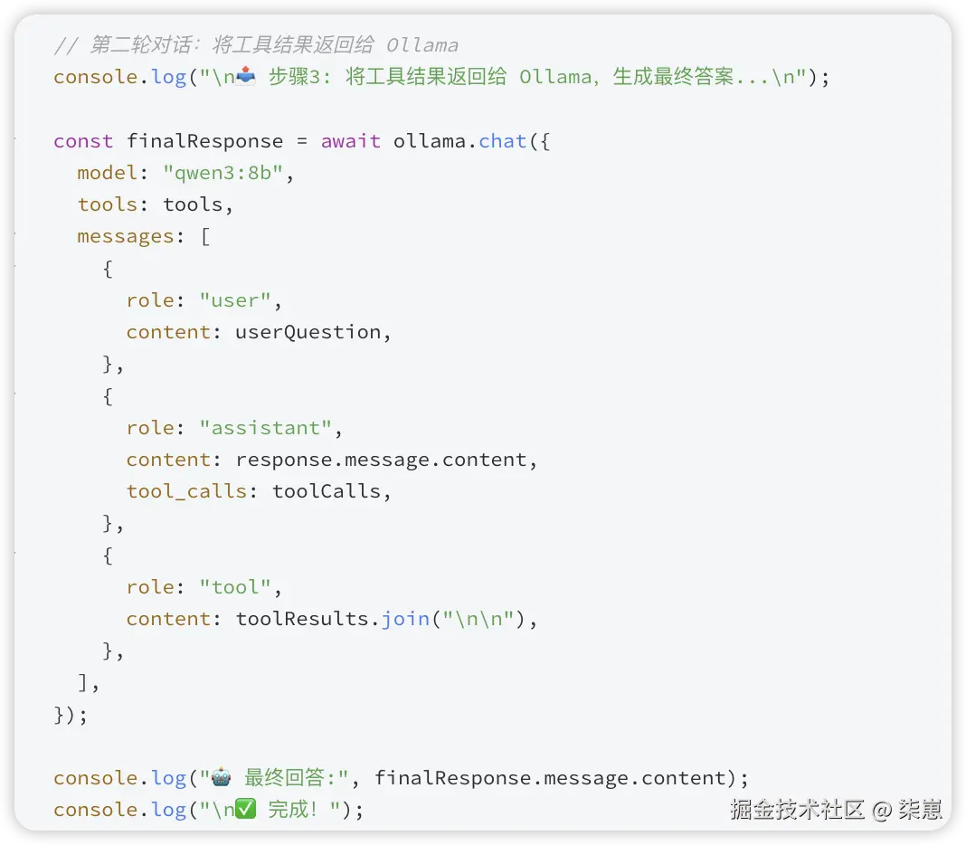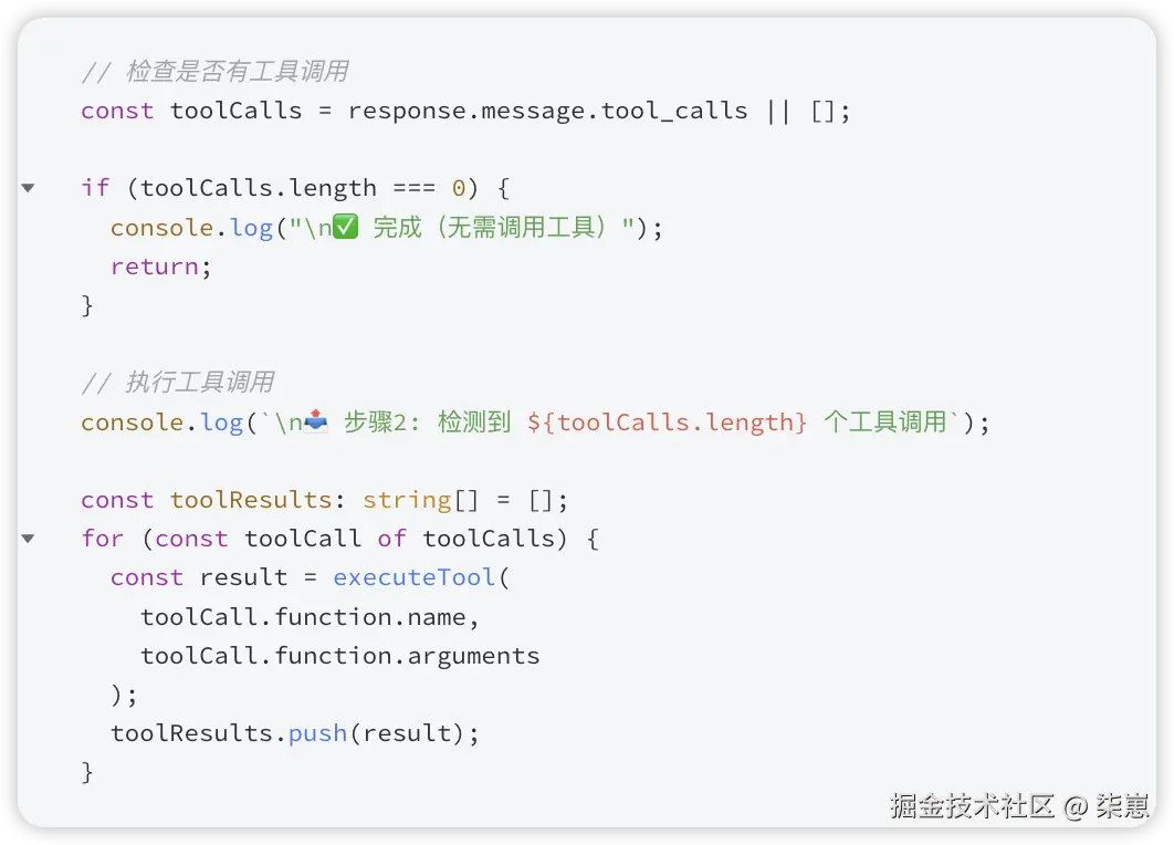 call_tool:执行工具。输入是 LLM 回复中的工具调用请求,输出是工具的运行结果。