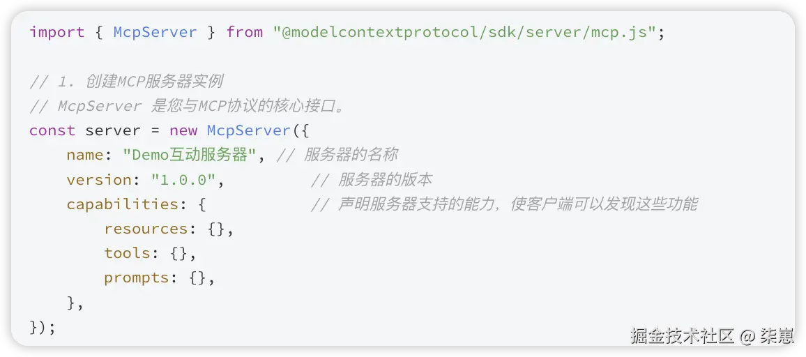引入SDK -> 创建服务实例 -> 注册资源/工具 -> 连接到通信器