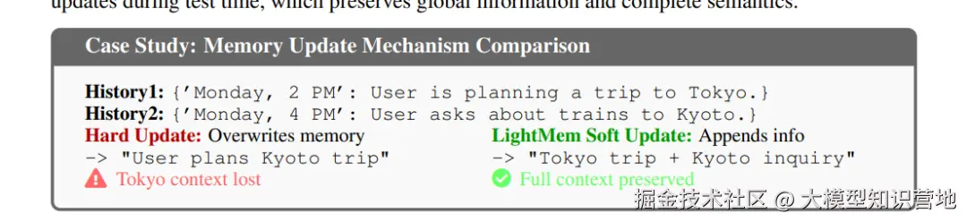 | 场景 | 硬更新 | LightMem 软更新 |
