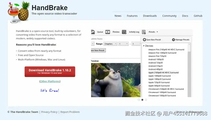 HandBrake这款软件许多用户可能还比较陌生,不过这可是一款免费开源的免费压缩软件app,甚至提供macOS、Windows和Linux多种操作系统的版本可用,支持处理多种常见的多媒体文件。