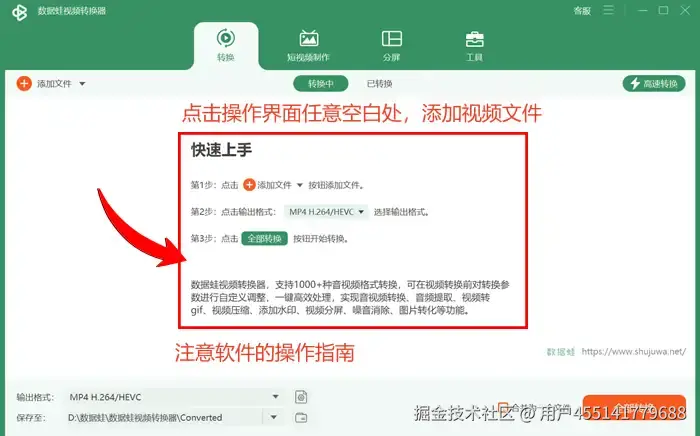 步骤1. 下载官方正版数据蛙视频转换器,将准备压缩的视频文件添加到软件的操作界面当中。你可以试用左上角的添加文件功能,也可以直接将视频拖入操作台。