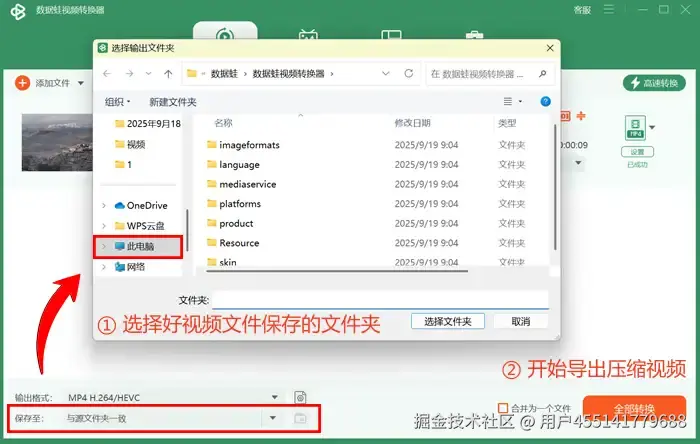 步骤3. 数据蛙视频转换器会将压缩好的视频保存到默认位置当中,如果你想保存到其他位置,记得点击左下角的 【保存至】 选项重新选择路径。