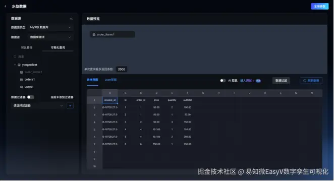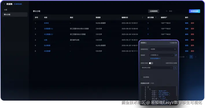 - 交互功能: 区别于服务端生成的静态图表,EasyV可以在前端实时渲染图表,能够实现诸多交互特性,具备更强的用户体验。