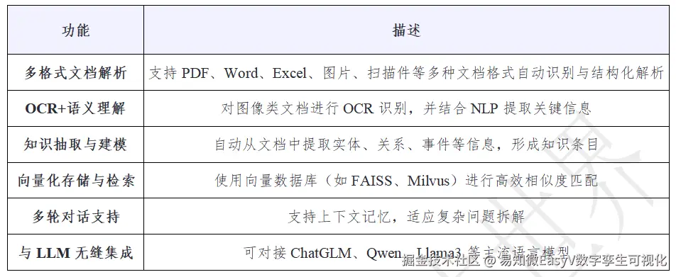 在EasyV中,底层的知识库应用建立在RagFlow的开源平台之上。知识库作为语音交互大屏背后的重要“知识大脑”,不仅提升了系统的智能化水平,也为个性化服务、精准问答、动态响应提供了基础保障。借助RAG技术与RagFlow这样的平台工具,我们能够更加高效地构建、管理和应用知识库,使其真正服务于语音交互的每一个环节。