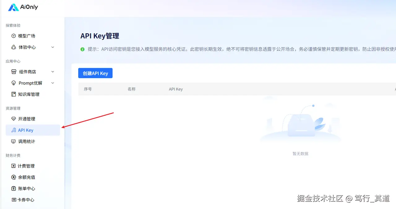进入到APIKey页面(直达链接):www.aiionly.com/keyApi