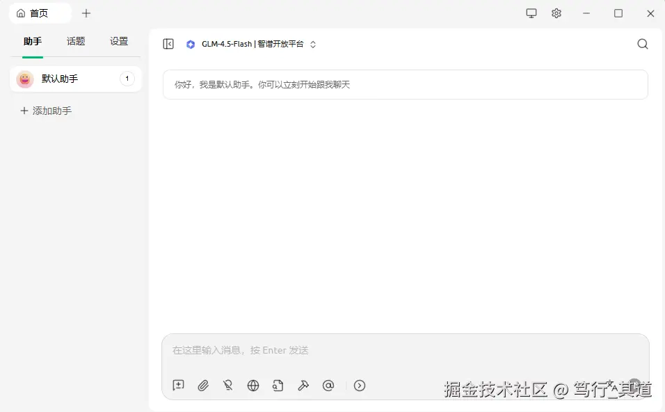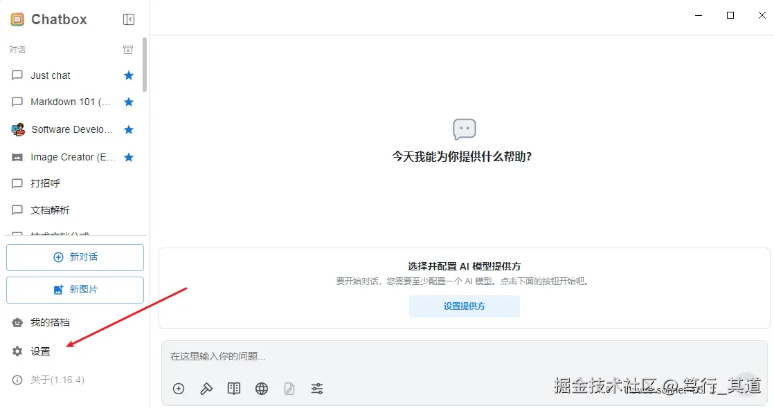 启动后进入首页,首页提示我们需要配置AI模型提供方才能使用,那么让我们一起来接入AiOnly