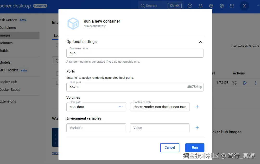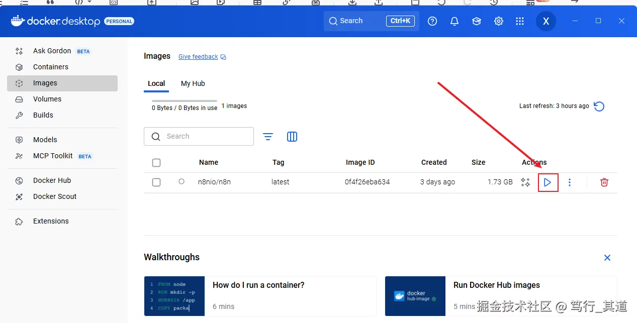 在Docker Hub中搜索n8n,然后找到n8nio/n8n点击Pull