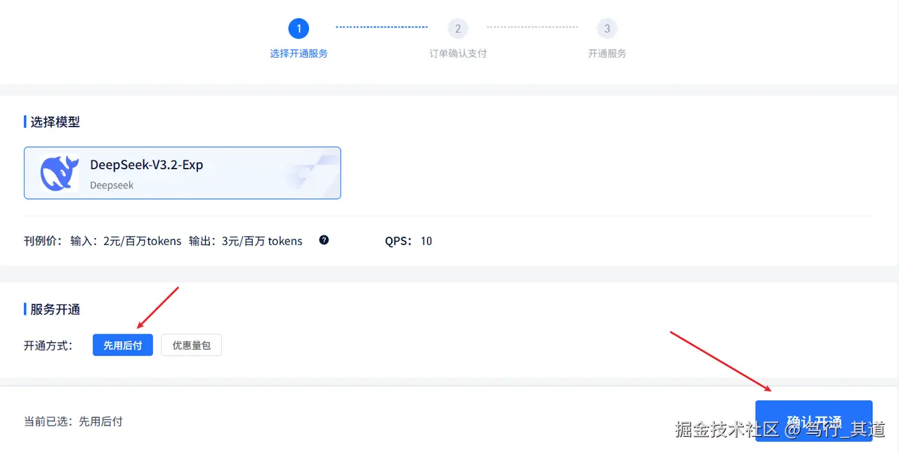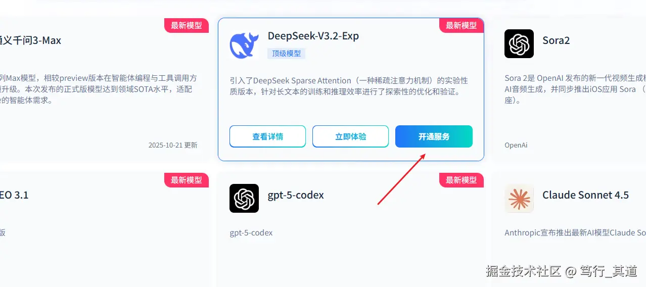 第二步:开通模型(以DeepSeek-V3.2-Exp为例)