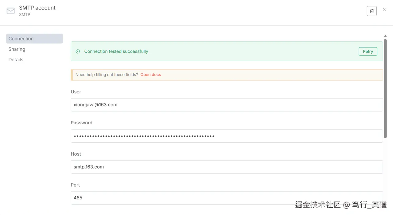 your_email@163.com) - Password: 邮箱授权码 (非登录密码)
