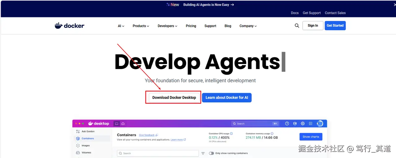 进入到Docker官网后点击Download Docker Desktop去下载Docker桌面版