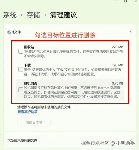 步骤1: 在电脑系统中搜索“清理建议”,找到功能入口(存储页面向下拉);