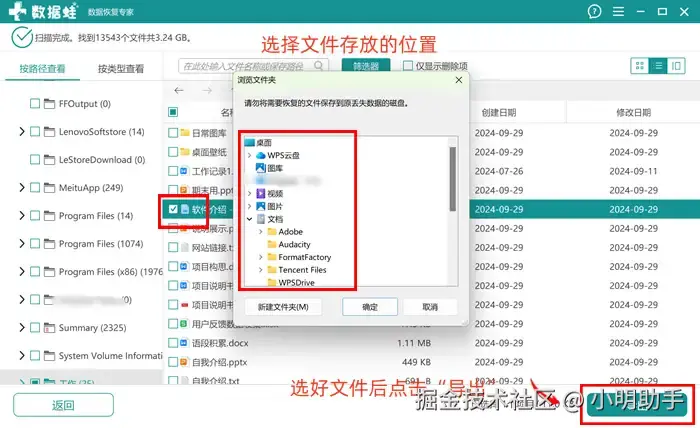 步骤2: 耐心等待软件完成扫描,在右方选择文件后点击“导出”,就能找回文件啦。