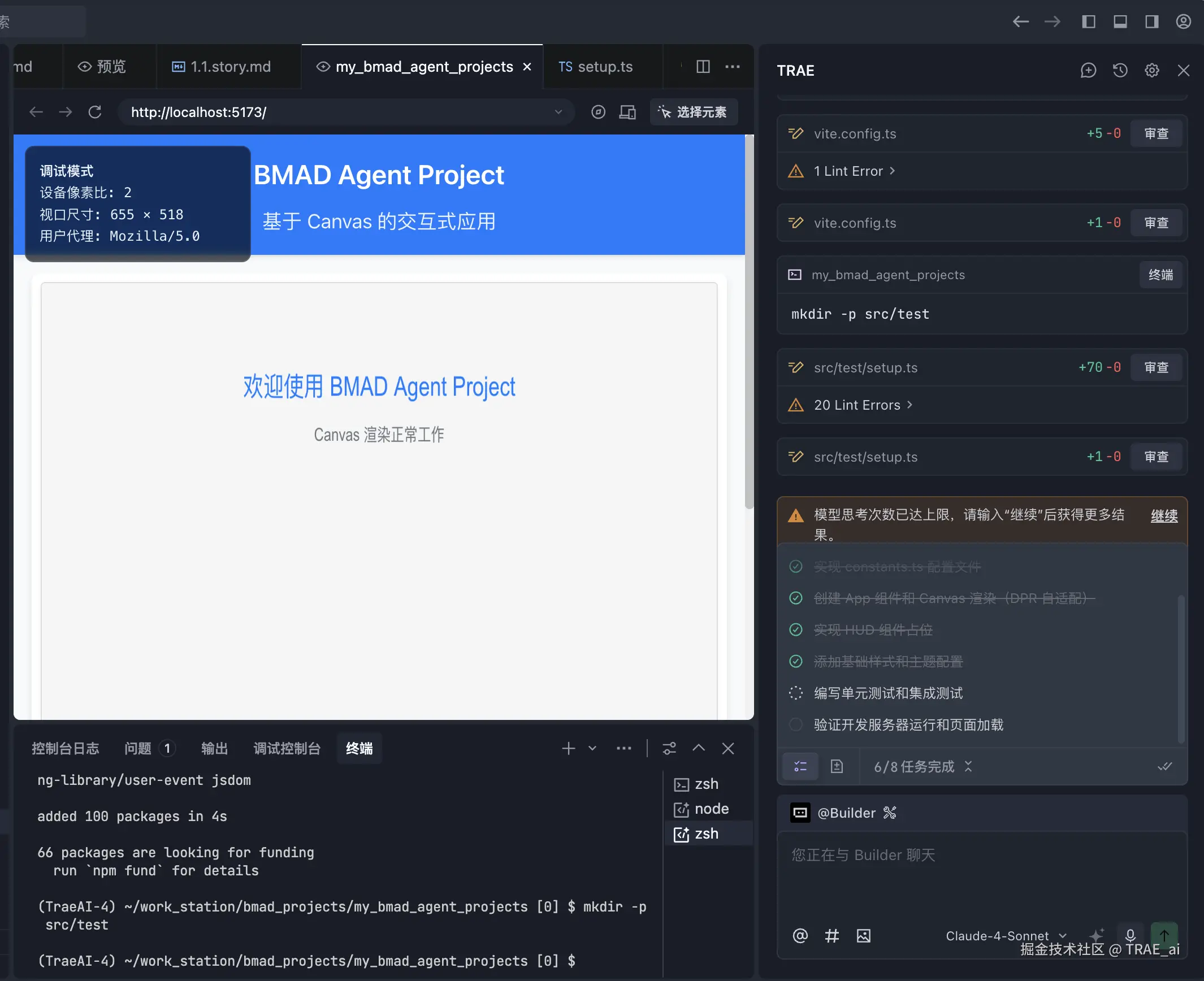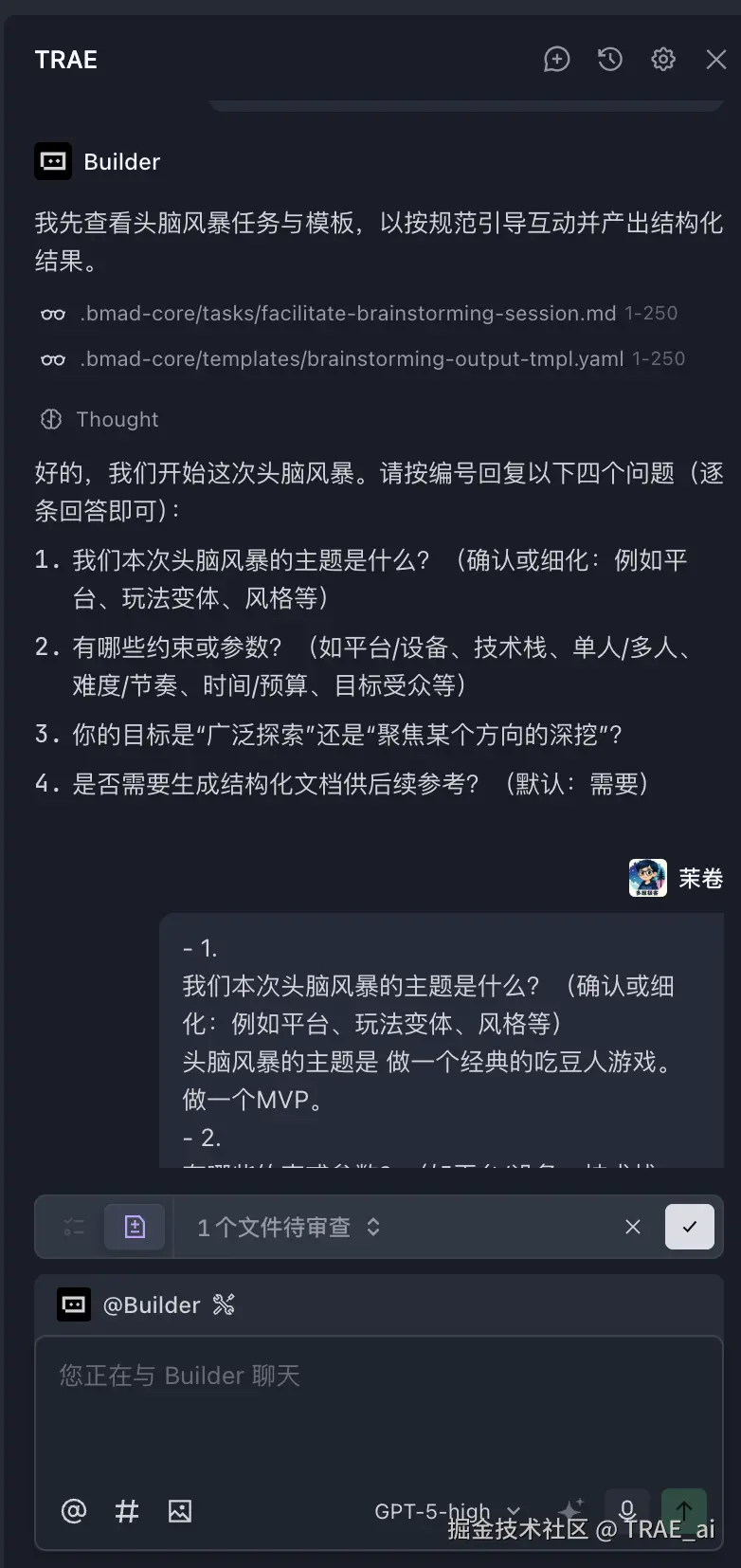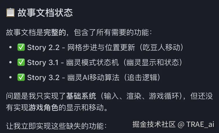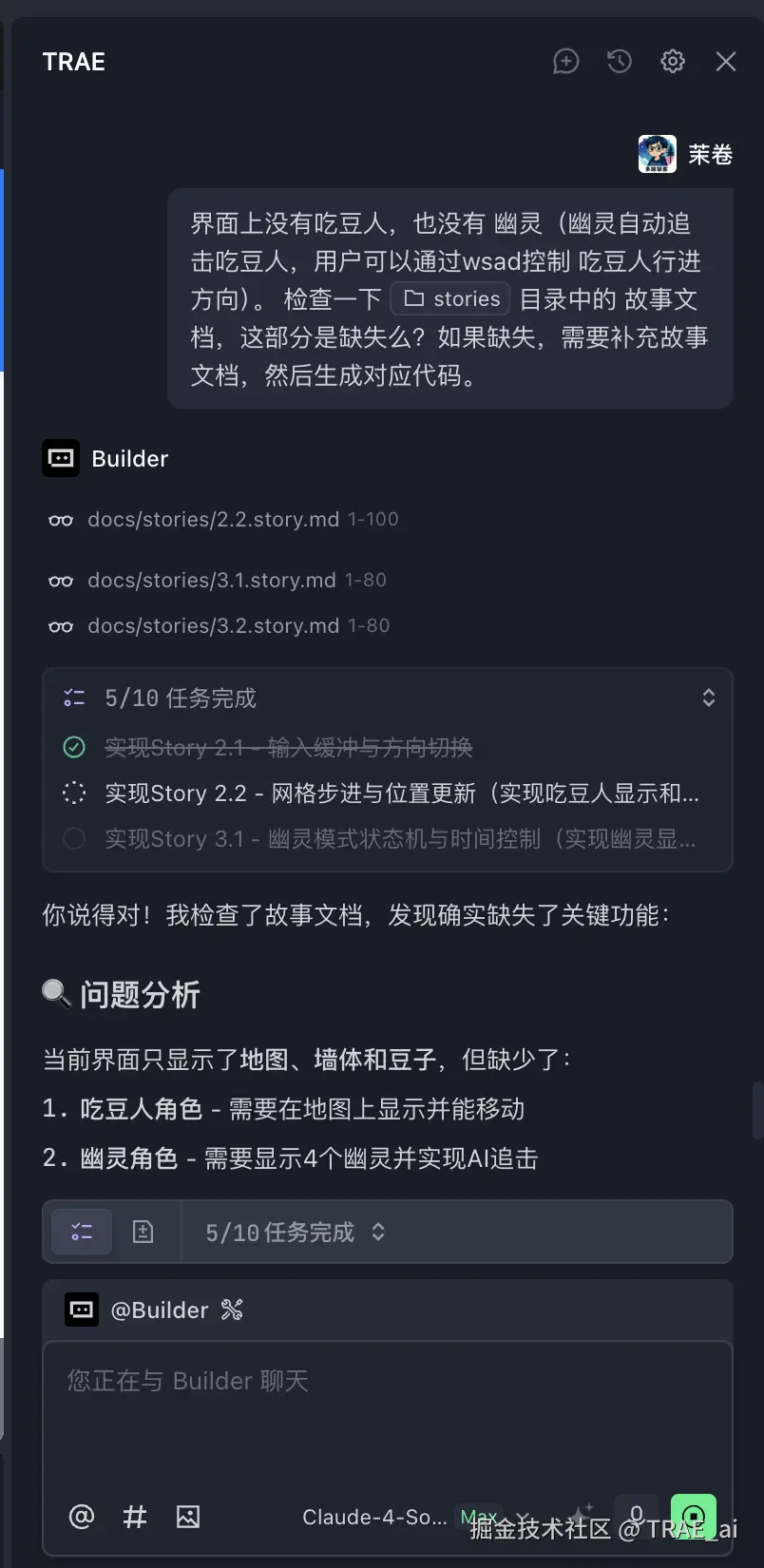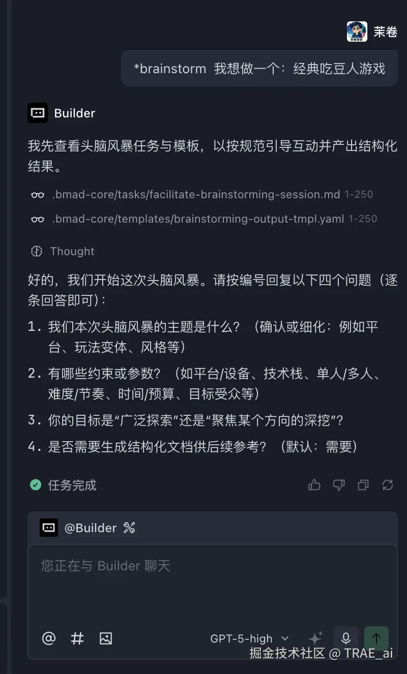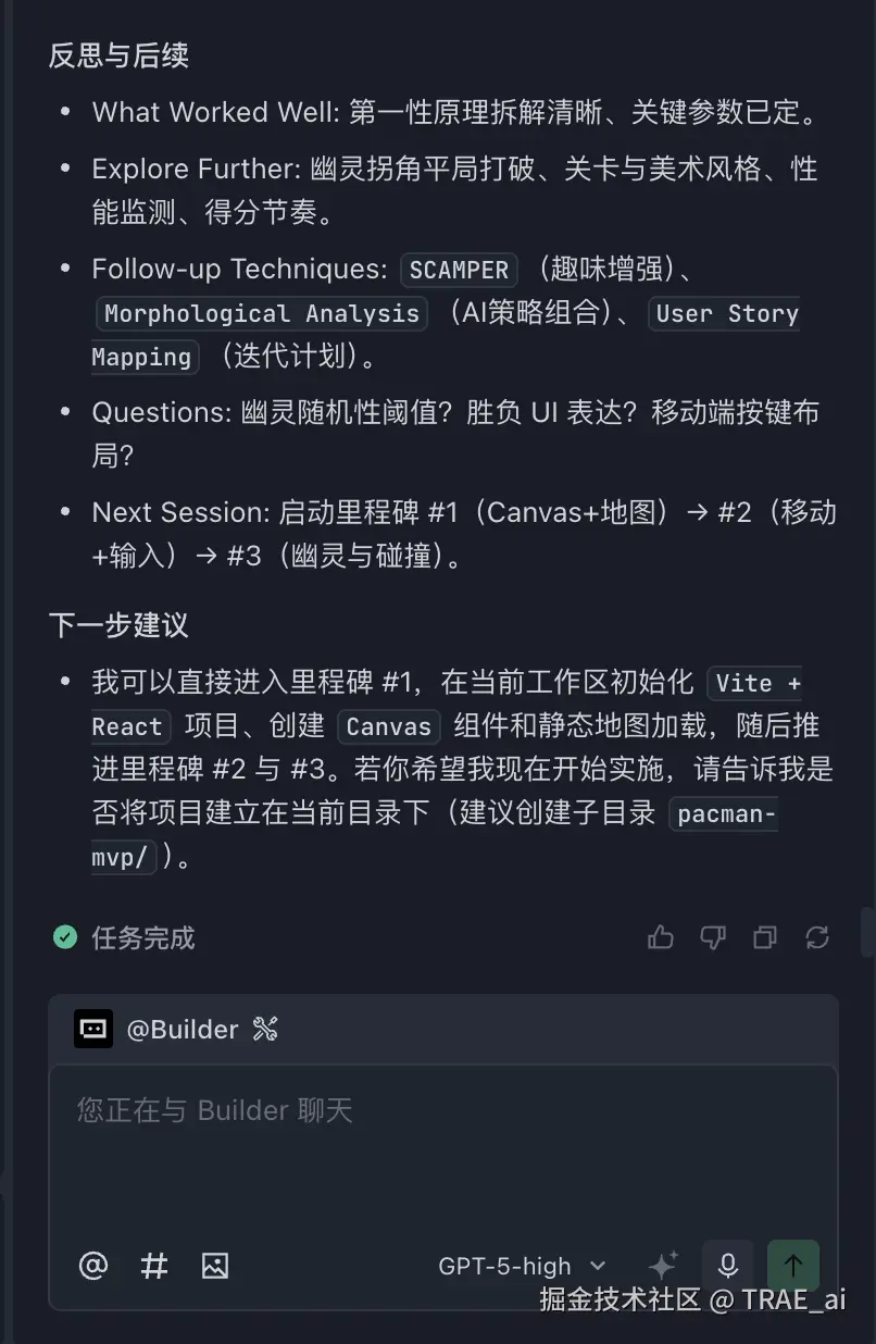 这个过程不仅仅是开发一个游戏,更是见证 AI 如何重塑工作流:它解决了传统开发中的痛点,让规划与执行无缝衔接,人类干预如点睛之笔般精准。TRAE 和 BMAD-METHOD™证明了,AI 代理不是取代开发者,而是成为你的“敏捷大脑”,让创意从 idea 瞬间落地。