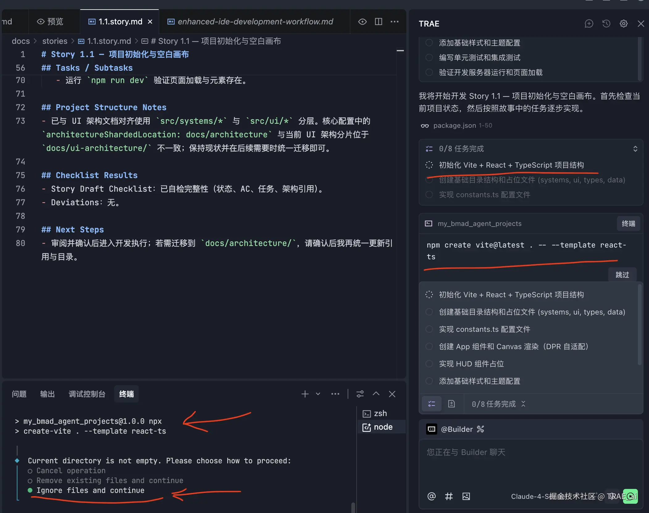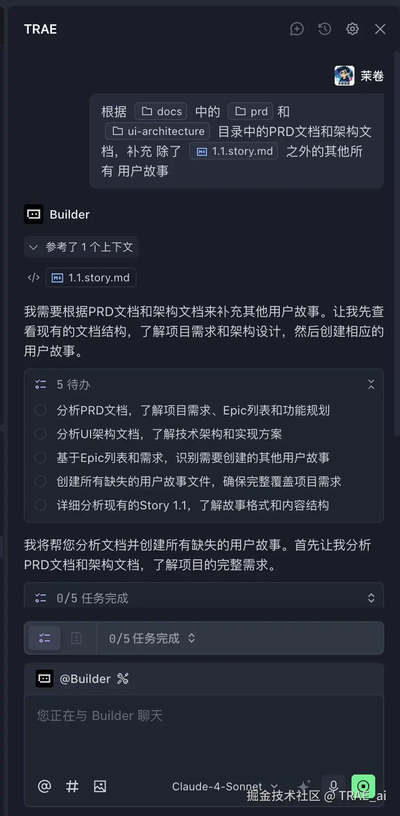 注意:用 # 号选择 1.1.story.md 文档 (之前生成的故事文档)。