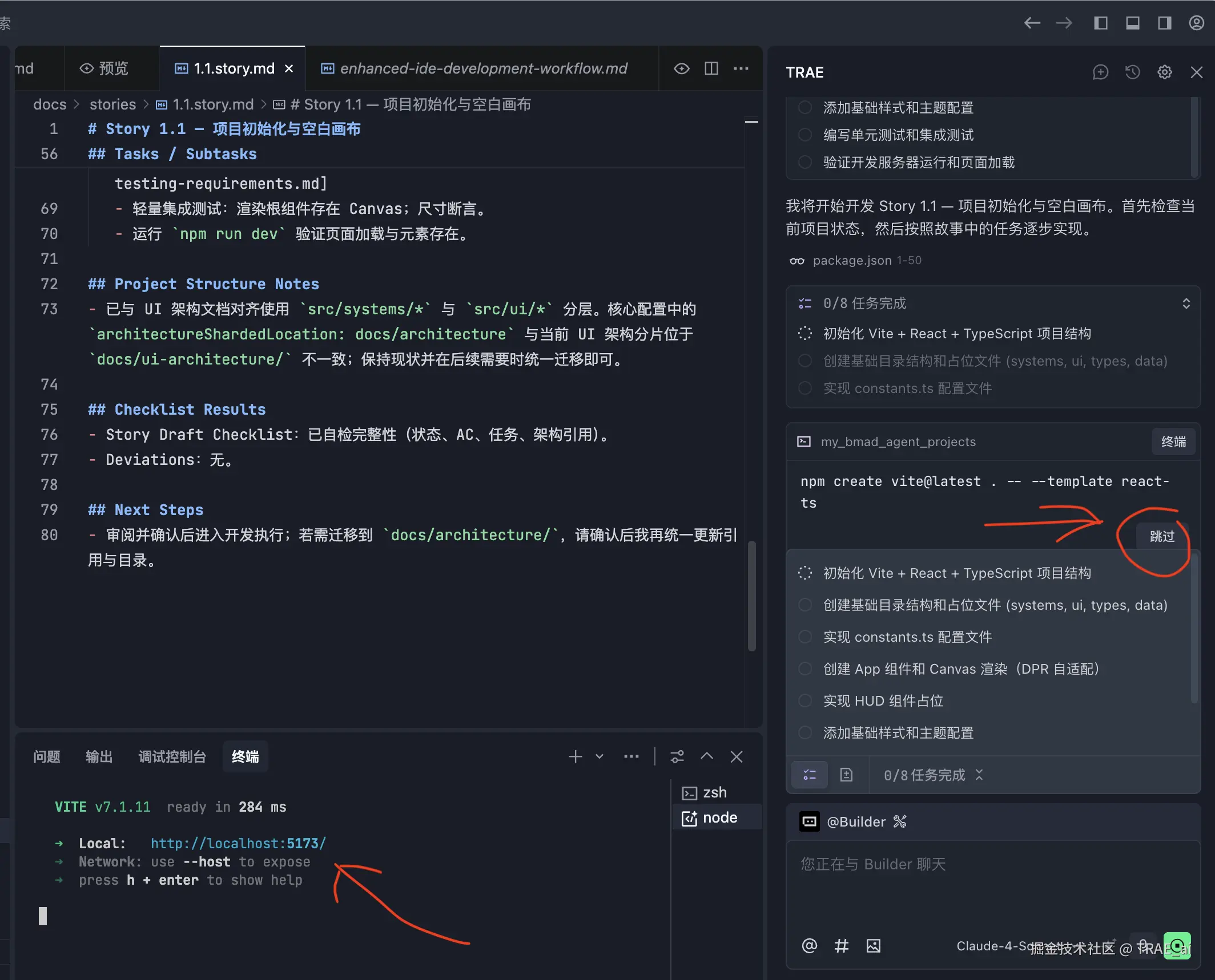 项目启动后(底部 5173 出现),点击右边的 跳过。