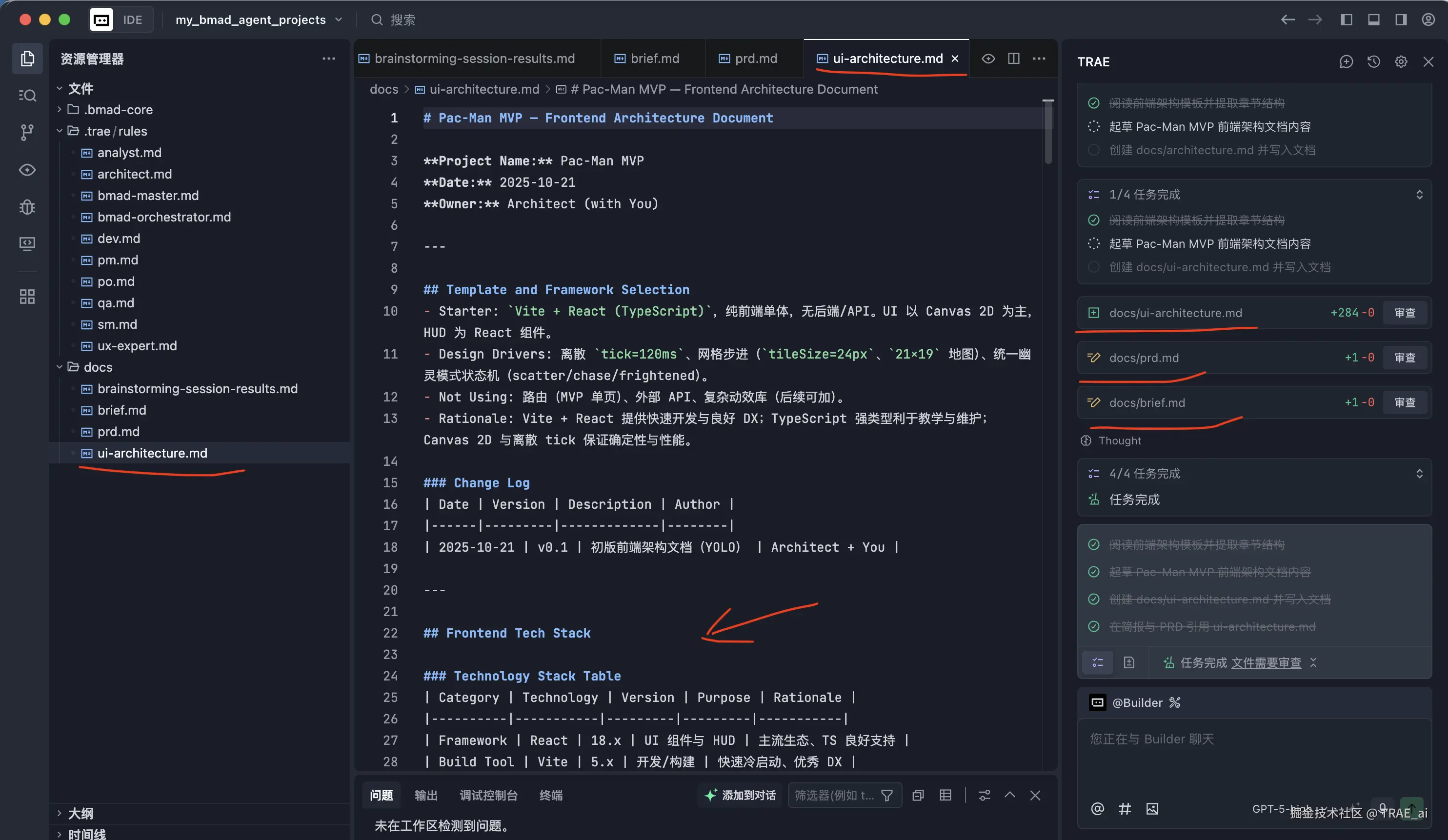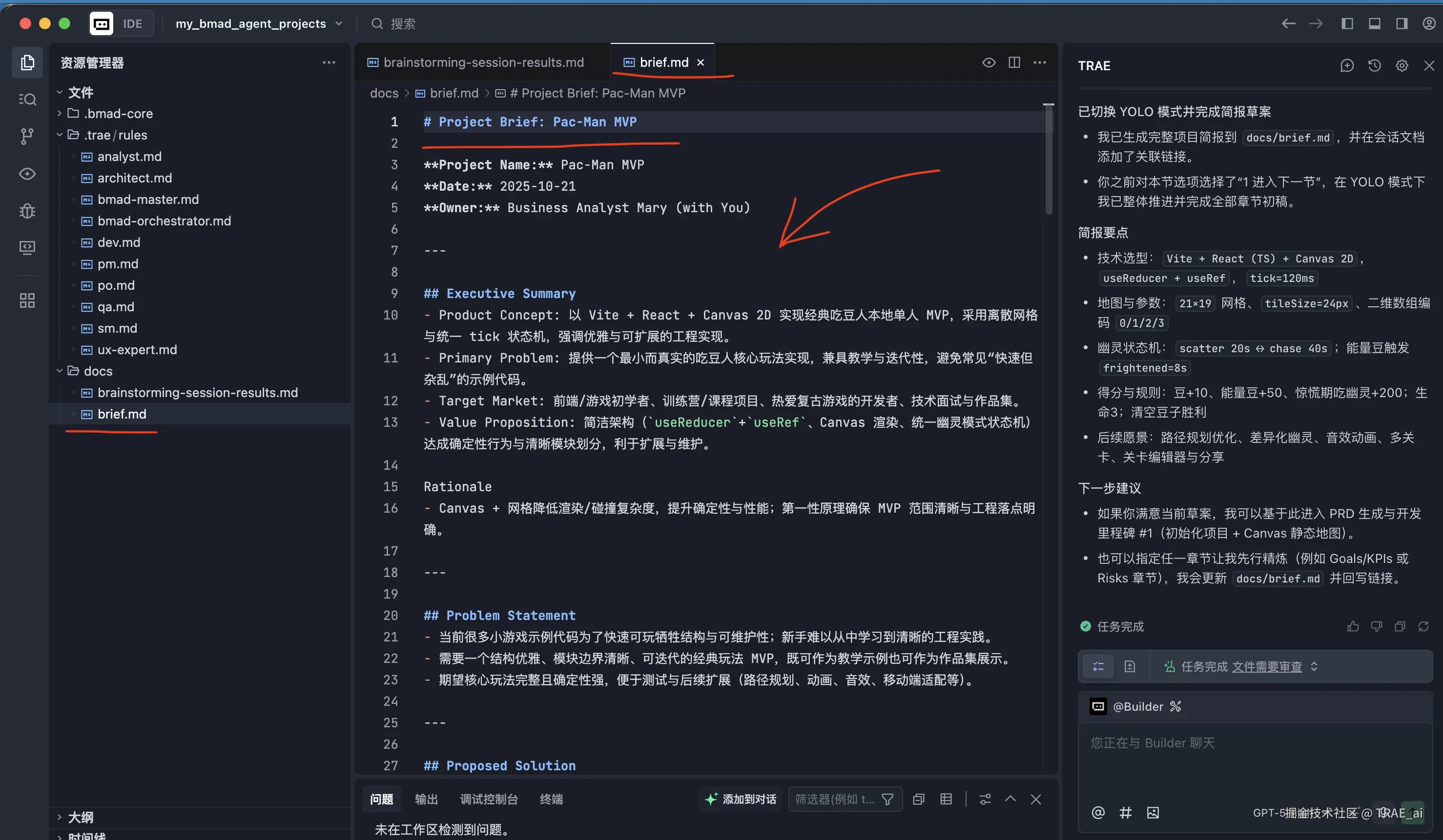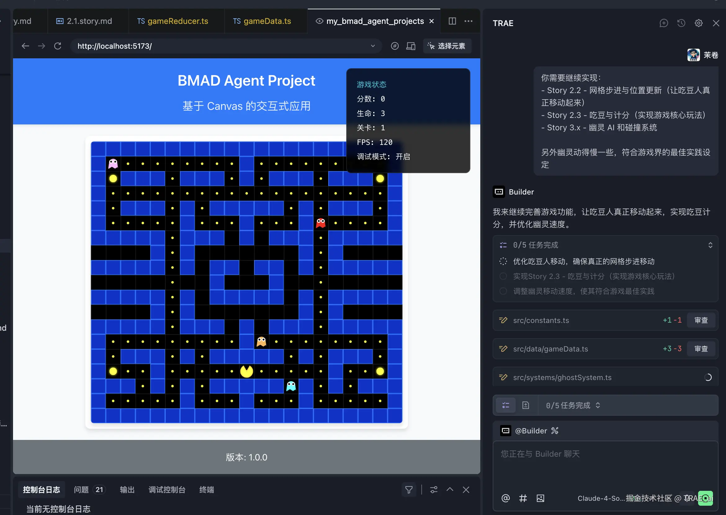 通过这个 BMAD-METHOD 的实战之旅,我们从一个简单的“经典吃豆人”idea 出发,历经头脑风暴、文档生成、用户故事拆解,到最终的代码迭代与优化,短短几步就构建出一个可玩的 MVP。
