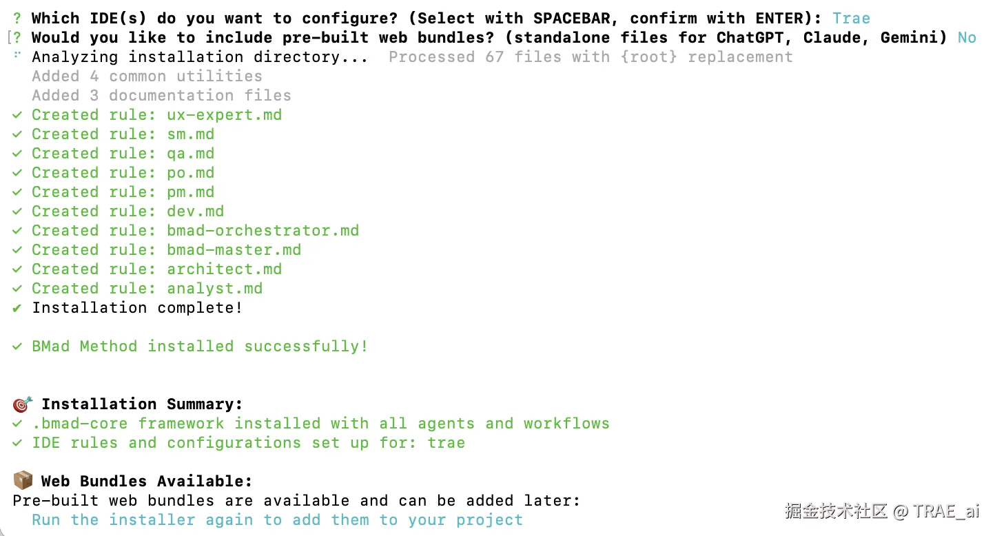 安装: 使用 npx bmad-method install 一键部署(需 Node.js v20+),支持升级和扩展包。