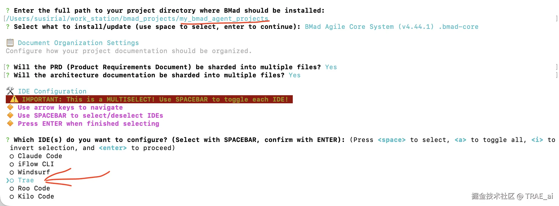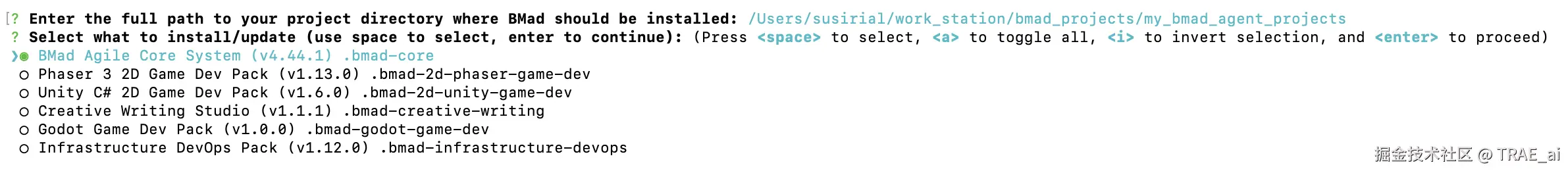 选择 TRAE(注意,按空格是选择,下图是没选中的状态)。