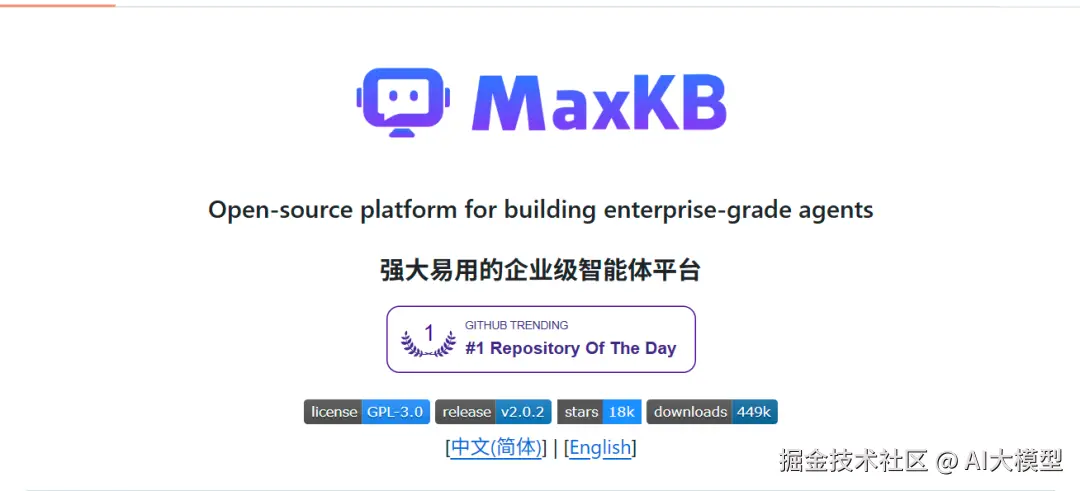 MaxKB(Max Knowledge Brain)是由国内1Panel团队开发的开源AI助手平台,专为企业级应用而设计。该项目广泛应用于智能客服、企业内部知识库、学术研究和教育等场景。一个开箱即用型的RAG智能问答应用,MaxKB不仅仅是一个中间件平台,而是一个完整的、可直接部署的AI助手解决方案。