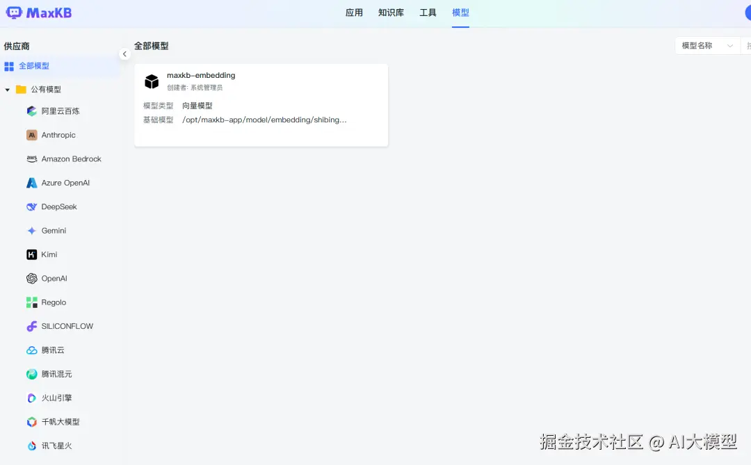 另外,如果你安装1Panel面板服务,可以直接进入到应用商店,在【AI/大模型】分类下找到 MaxKB 进行快速安装使用。