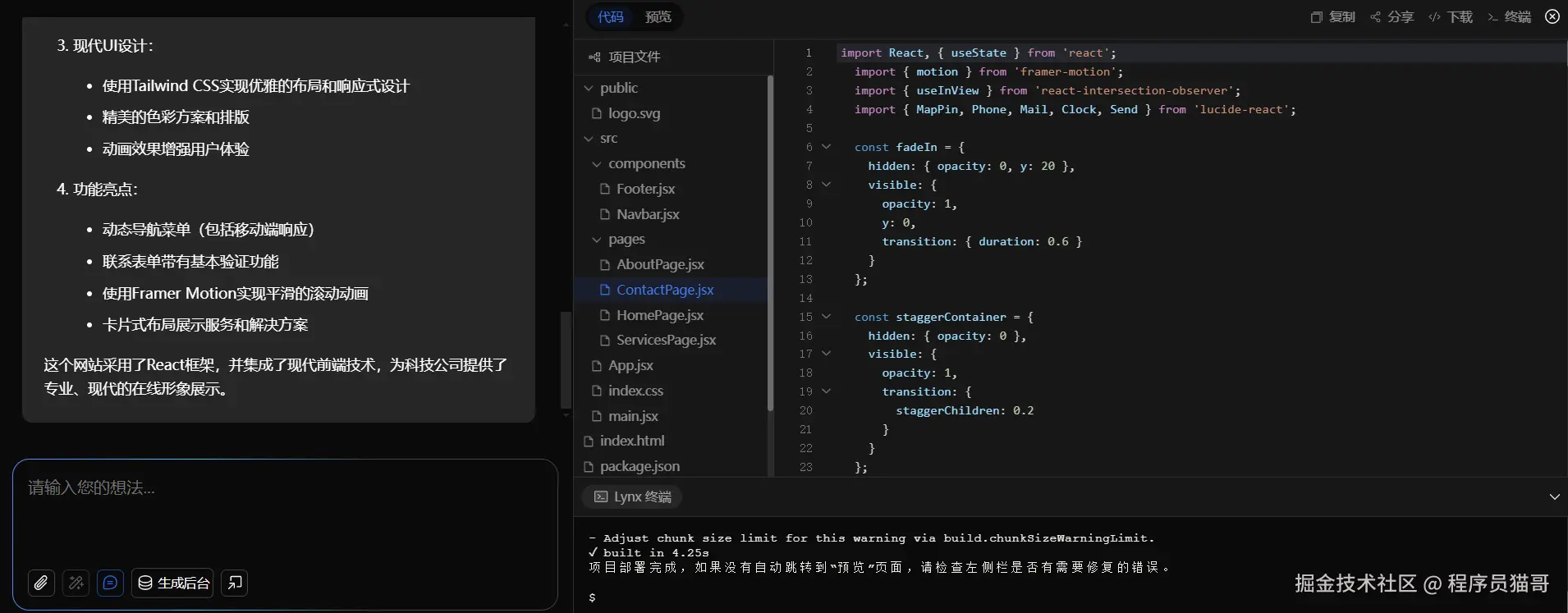 最后要重点介绍的是Lynx,它代表了AI编程的新方向: