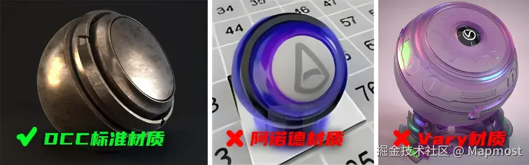 外置渲染器材质(如 V-Ray、Octane、Redshift等)需在导出前转换为默认材质类型,否则将无法被正确解析。