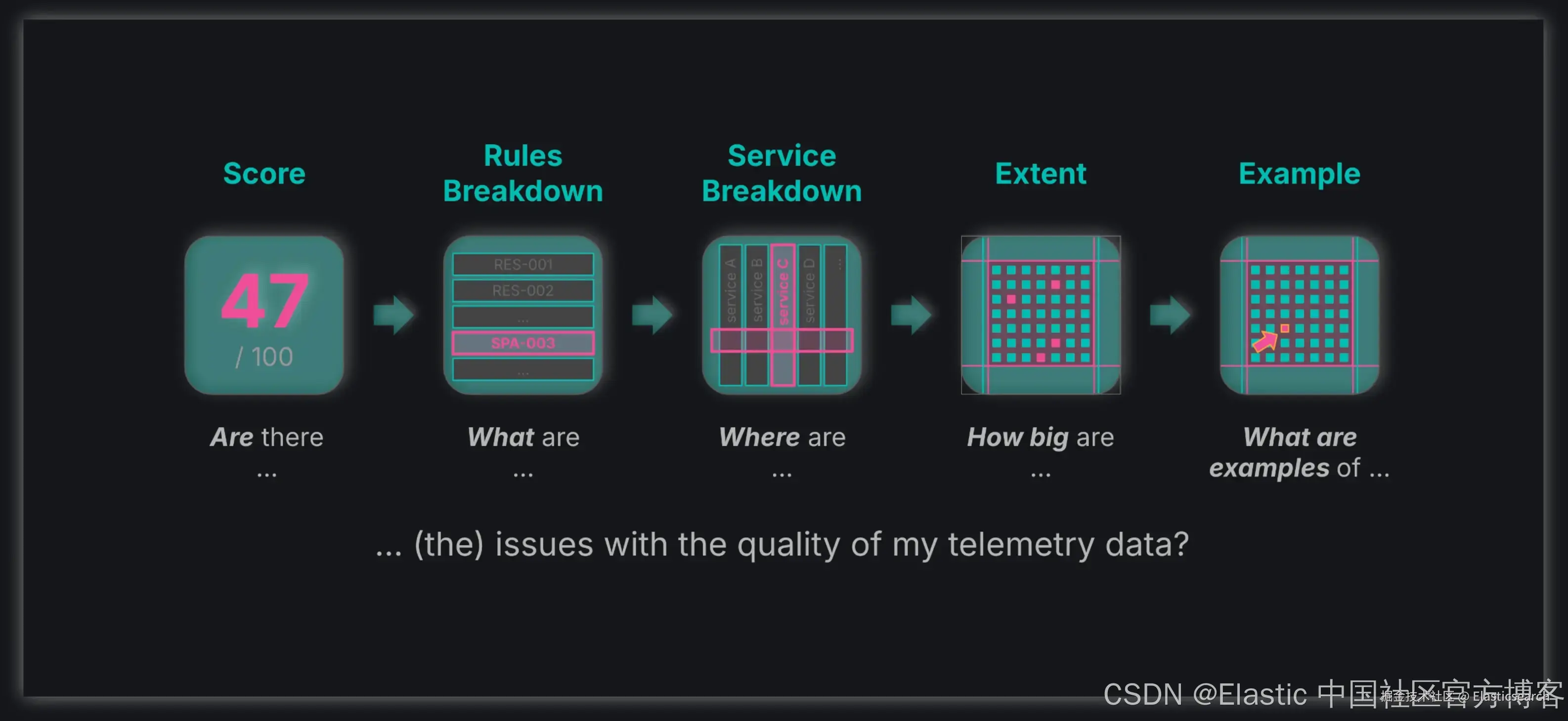 OpenTelemetry 的采用率正在快速上升,越来越多的公司依赖 OpenTelemetry 来收集可观测性数据。虽然 OpenTelemetry 提供了清晰的规范和语义约定来指导遥测数据收集,但它也带来了显著的灵活性。高灵活性意味着高责任 —— 基于 OTel 的数据收集容易出现问题,导致中等或低质量的遥测数据。低质量数据会阻碍后端分析、混淆用户并降低系统性能。为了从 OpenTelemetry 数据中获取可操作的洞察,保持高数据质量至关重要。Instrumentation Score 项目通过提供一种标准化方法来衡量 OpenTelemetry 数据质量,解决了这一挑战。尽管规范和工具仍在发展中,但其基本概念已经非常有吸引力。在本文中,我将分享我在实验 Instrumentation Score 概念中的经验,并演示如何利用 Elastic Stack —— 使用 ES|QL、Kibana Task Manager 和 Dashboards —— 在 Elastic Observability 内基于该方法构建数据质量分析 POC。