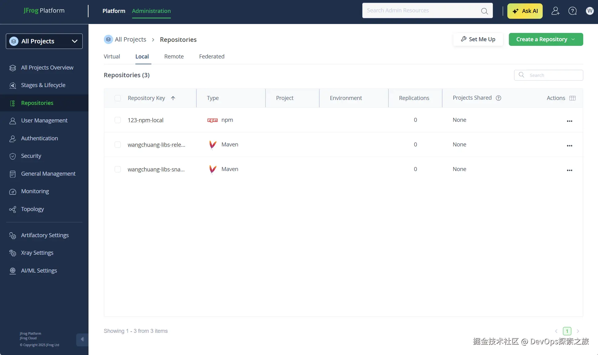 JFrog主界面