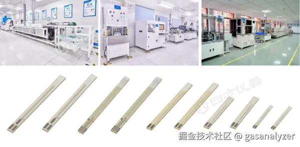 图1 四方仪器氧化锆传感器生产线及不同类型氧化锆传感器芯片产品