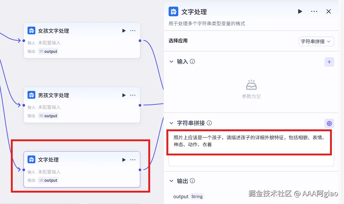 再添加一个变量聚合节点,并将以上三个文本处理节点与变量聚合节点连接