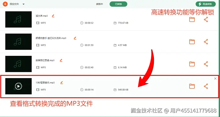 第三步: 等待音频文件的转换进度条全部显示完成,就可以点击右下角的全部转换,将音频文件自动保存到默认位置当中。