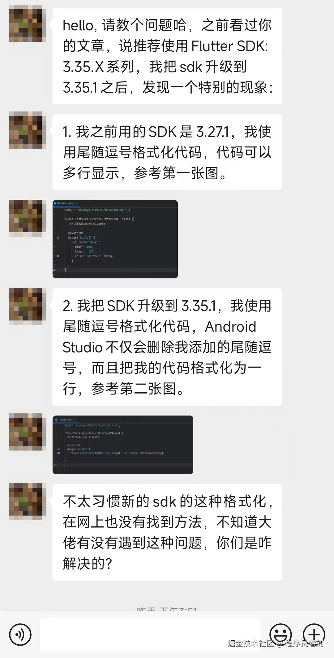 前两天有个朋友咨询升级到Flutter 3.35后的格式化问题。