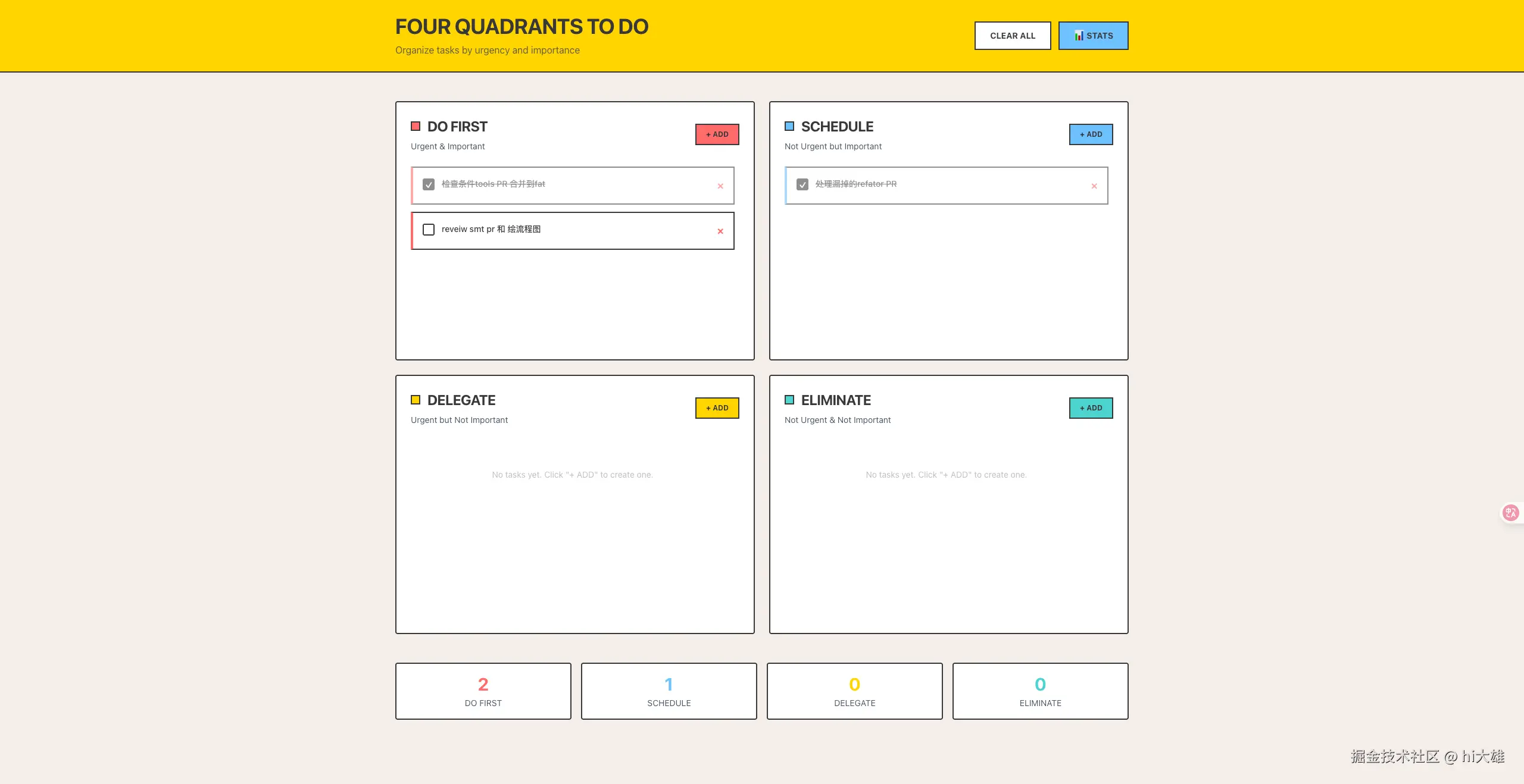 最终成品效果如下,全程vibe coding,详见:4-quadrant-to-do.vercel.app/