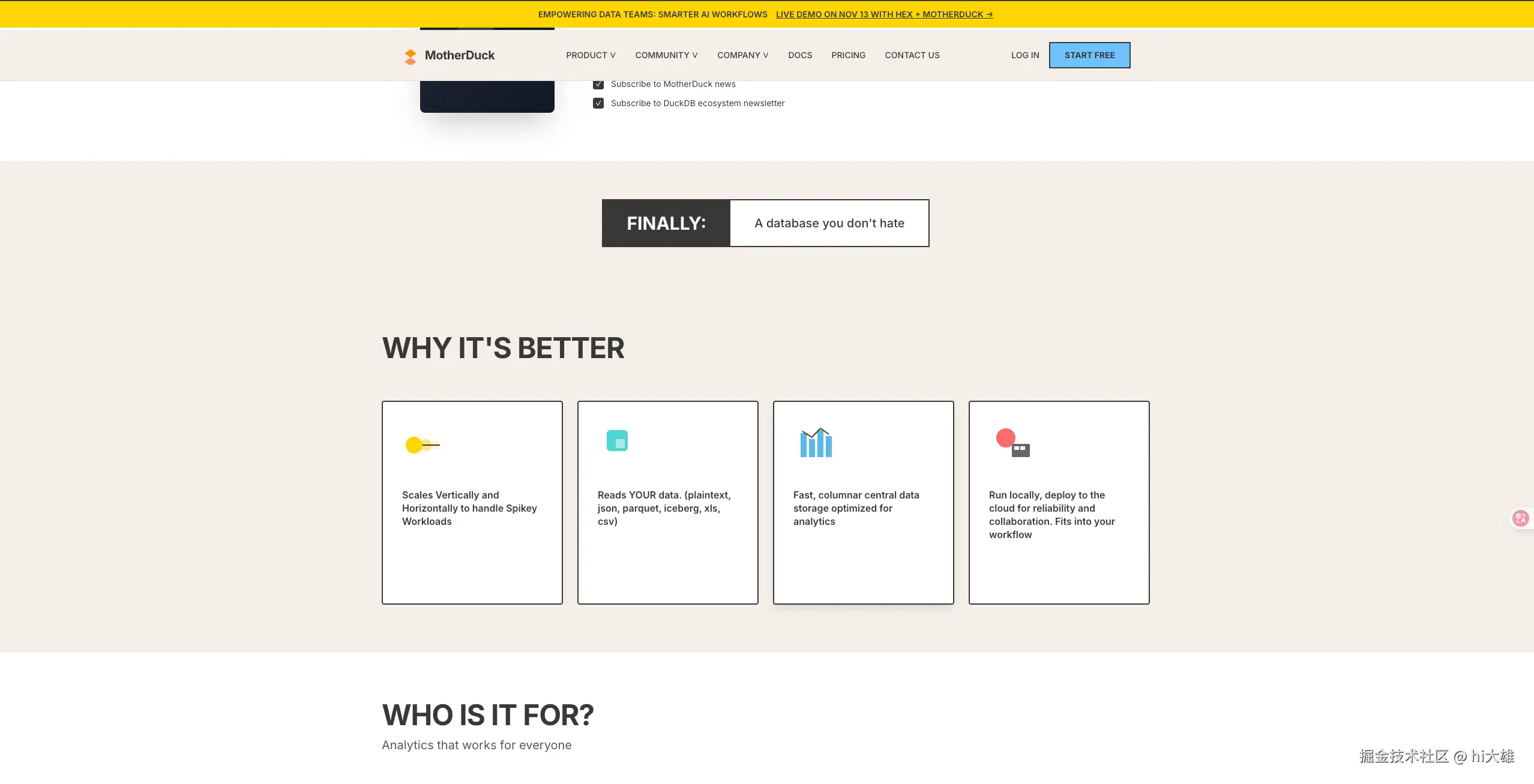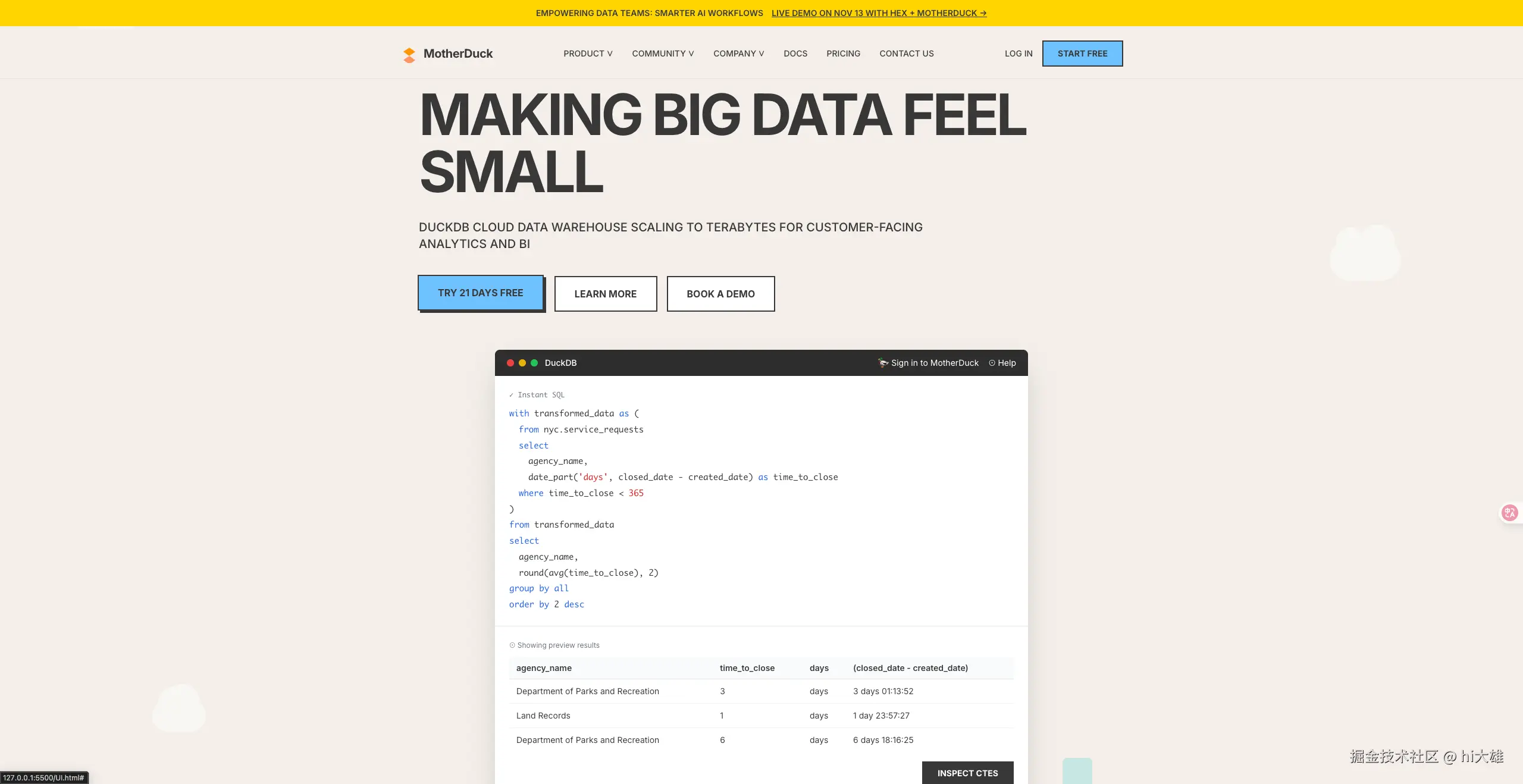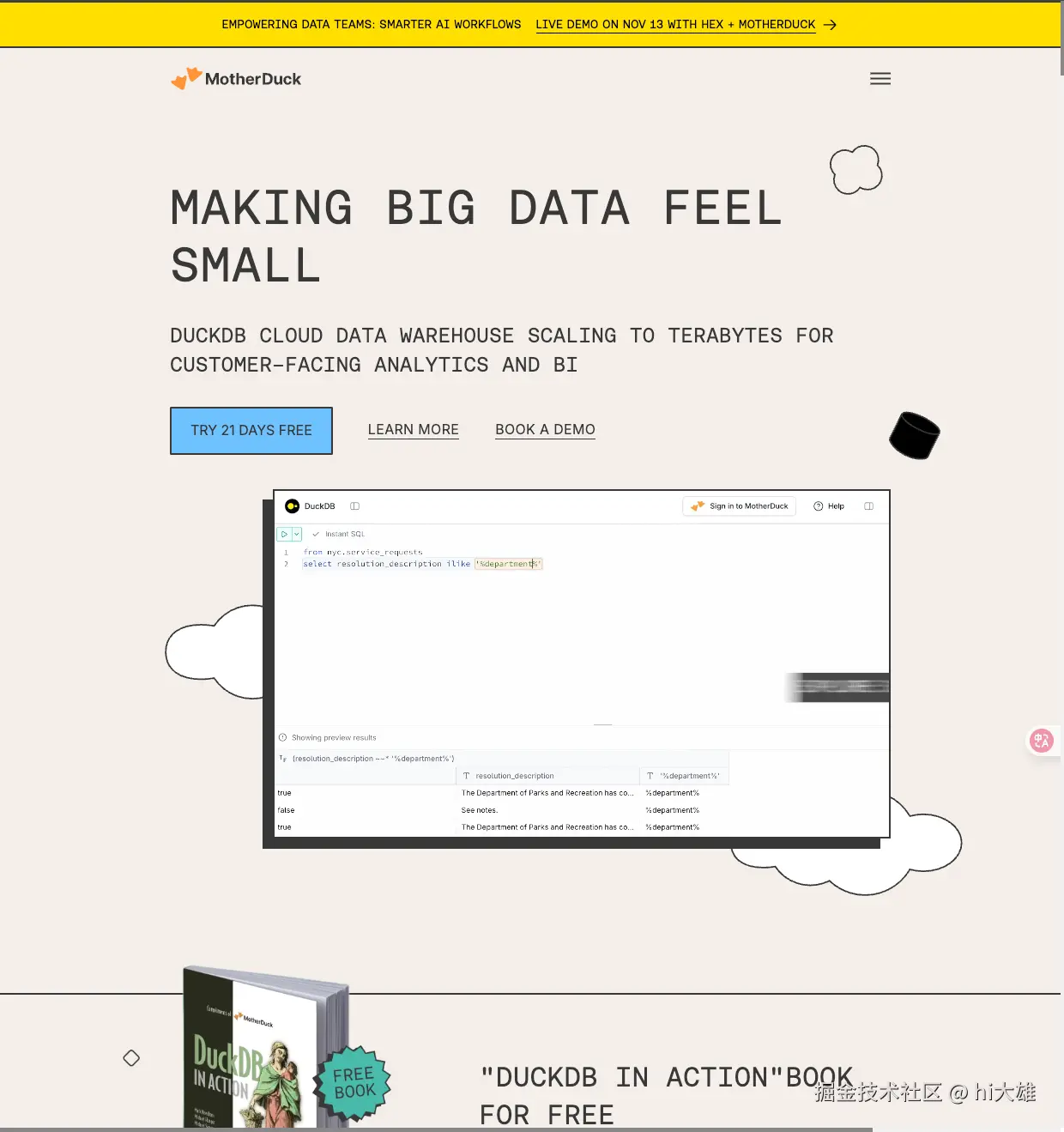 给大家一个样例,MotherDucker 的首页。 给大家10秒钟,思索一下。如果你想复刻这种UI风格,用在自己的产品上,你会怎么做?