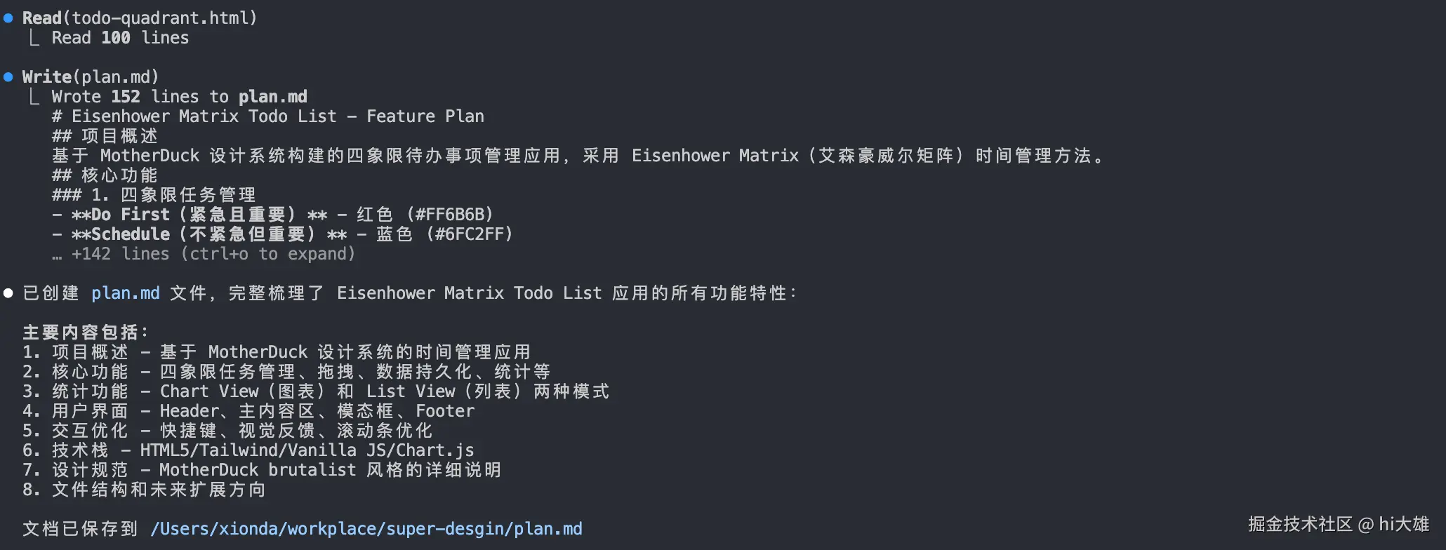 为了验证效果我们叫cc 大哥,参考STYLE_GUIDE.md ,实现一个四象限 to-do list 的.html 原型。