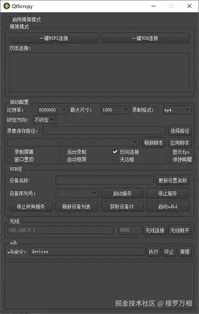 一款基于 Scrcpy 核心功能开发的跨平台工具,通过 Qt 框架重构了图形界面,支持 Windows、macOS、Linux 三大系统,开发者调试、日常投屏控制安卓设备的高效工具。